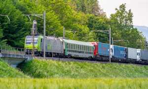 Zunehmender Güterverkehr auf der Autobahn auf Schienen zwischen Freiburg und Novara